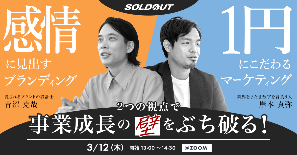 地方を含む全国の志ある中堅・中小企業の成長支援をデジタルマーケティング領域で展開するソウルドアウト株式会社(本社:東京都文京区 代表取締役社長CEO兼CCO:荒波 修、以下「ソウルドアウト」)は、2026年3月12日(木)にオンラインセミナー『「感情」に見出すブランディングと 「1円」にこだわるマーケティング、 2つの視点で事業成長の"壁"をぶち破る!』についてのセミナーを開催いたします。